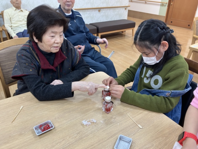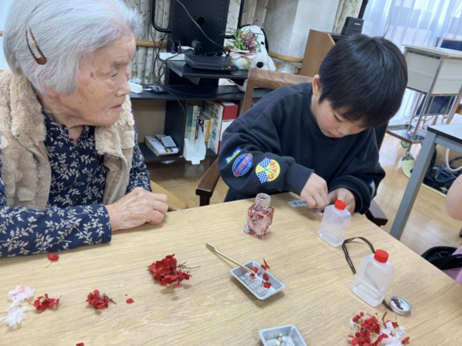 14時からは、ご入居者様と一緒にハーバーリウム作りをしました☆
