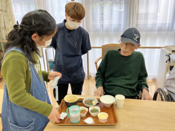 いつも通り配膳のお手伝いをしてもらってみんなで食べました(#^^#)