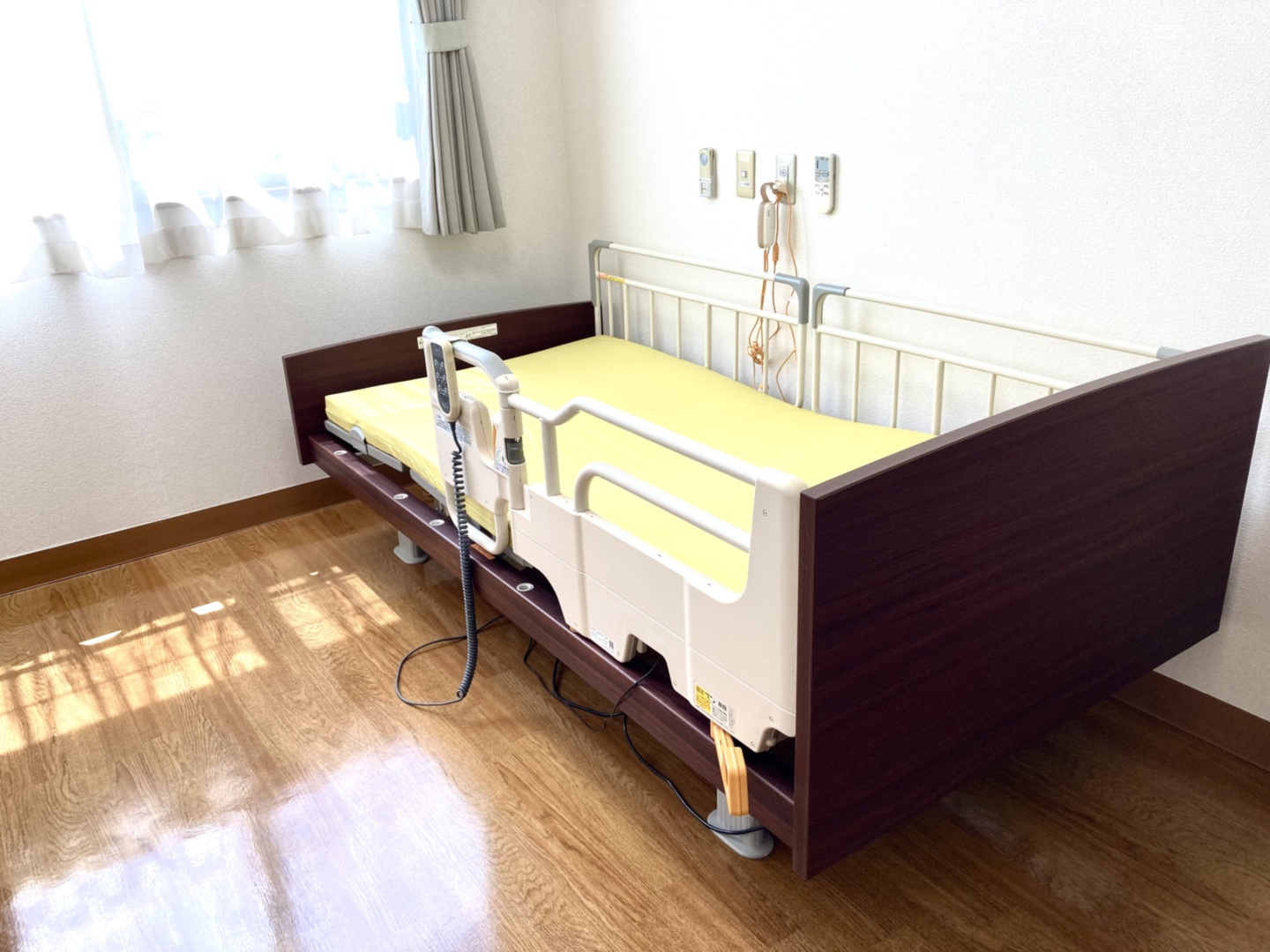 全室個室なのでご面会は24時間いつでもお気軽にお越しいただけます。居室にトイレや洗面台もあり、ご自宅と同様のプライベート空間を確保。また、緊急通報装置が各所に設置されており安心です。