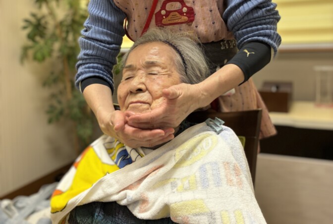 手足や背中を優しく撫でる「触れるケア」により、