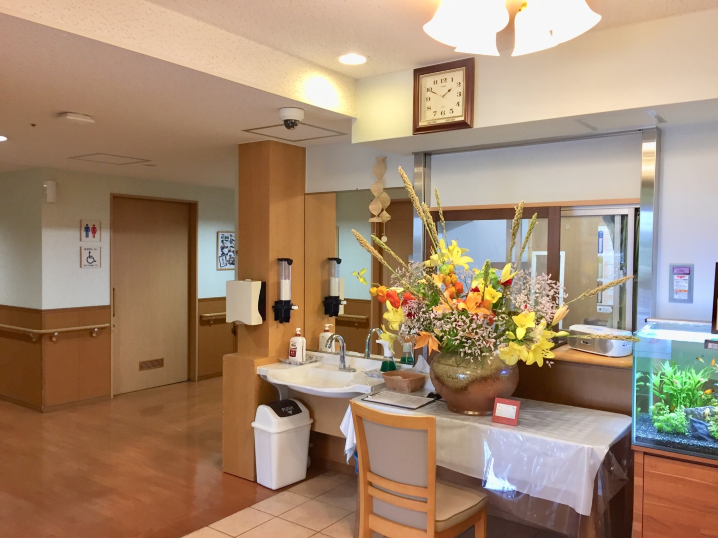 全室個室なのでご面会は24時間いつでもお気軽にお越しいただけます。居室にトイレや洗面台もあり、ご自宅と同様のプライベート空間を確保。また、緊急通報装置が各所に設置されており安心です。
