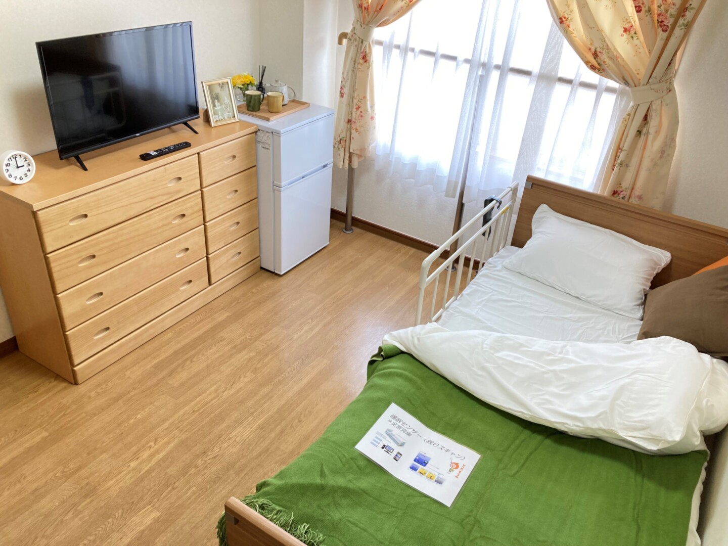 全室個室なのでご面会は24時間いつでもお気軽にお越しいただけます。居室にトイレや洗面台もあり、ご自宅と同様のプライベート空間を確保。また、緊急通報装置が各所に設置されており安心です。