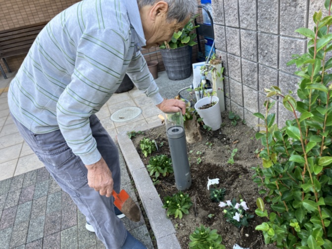 外には施設を取り囲むように細長い庭があります。ご入居者様で植物を育てていただくことが可能ですので是非ご利用ください。ご入居者様のおかげで季節ごとに綺麗な花が咲き続けています。