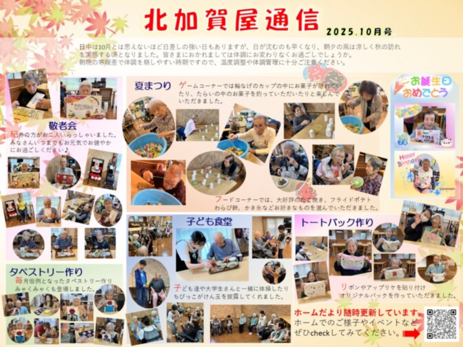 お正月や七夕、敬老会やクリスマスなどの季節のイベントをスタッフが考え、ご入居者さまと一緒に楽しんでおります。