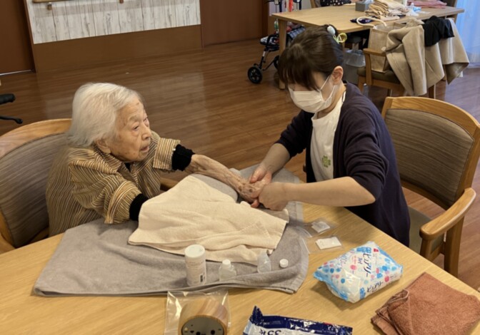 住み慣れたお部屋で最期を迎えたいというご入居者さまのご要望により、看取りに対応しています。事前に看護処置の準備、医療機関との連携の確認、ご家族さまとの連絡体制の確保などを行い、心を込めて、身体的、精神的苦痛、苦悩の緩和に努めます。