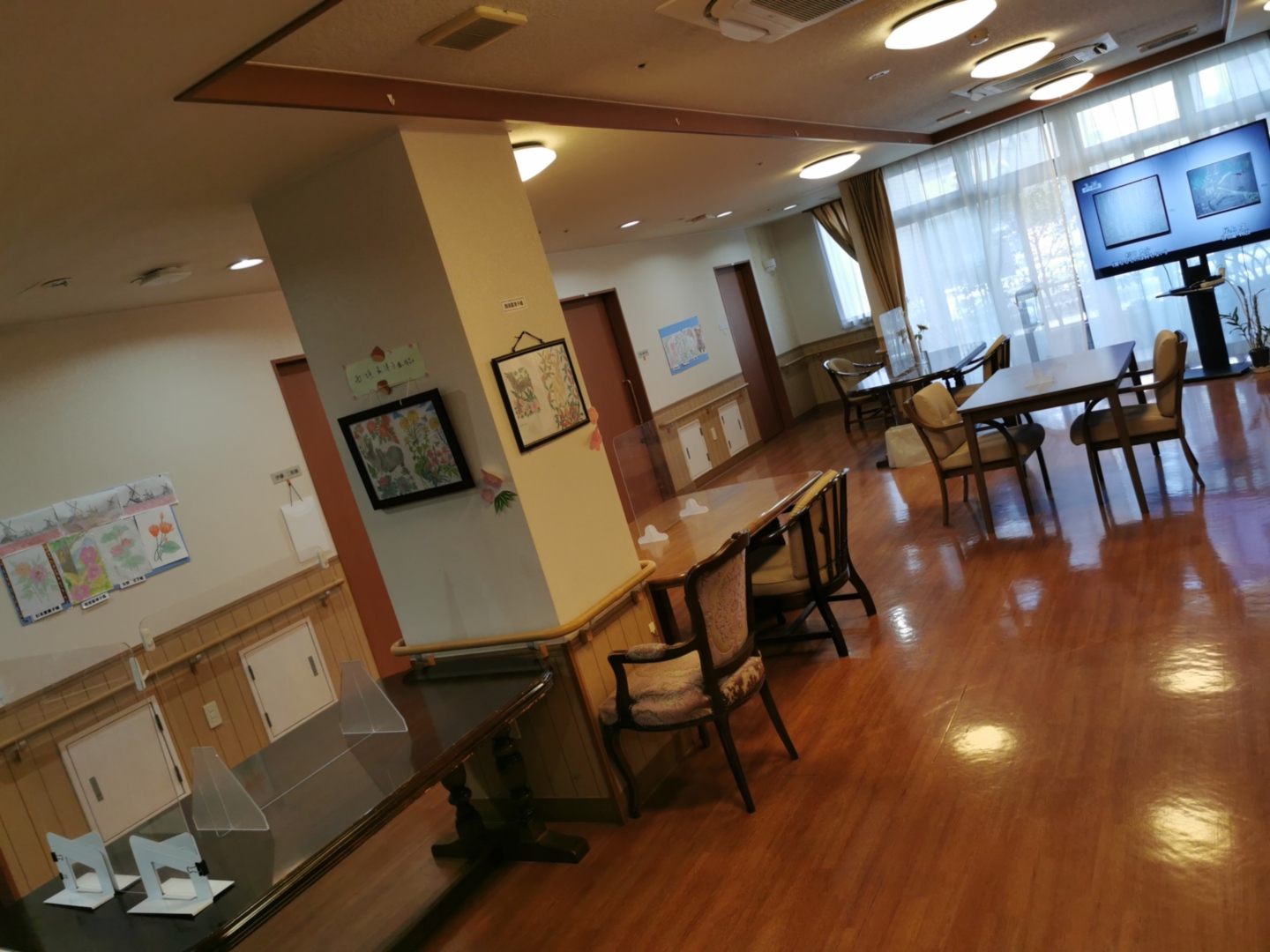 毎日清掃、消毒を実施しています。感染症にも留意しつつ、ご入居者さま同士自由に歓談できる空間となっています。