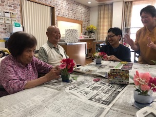 園芸療法を取り入れ、ご利用者さまと一緒に花を植える作業を行っています。