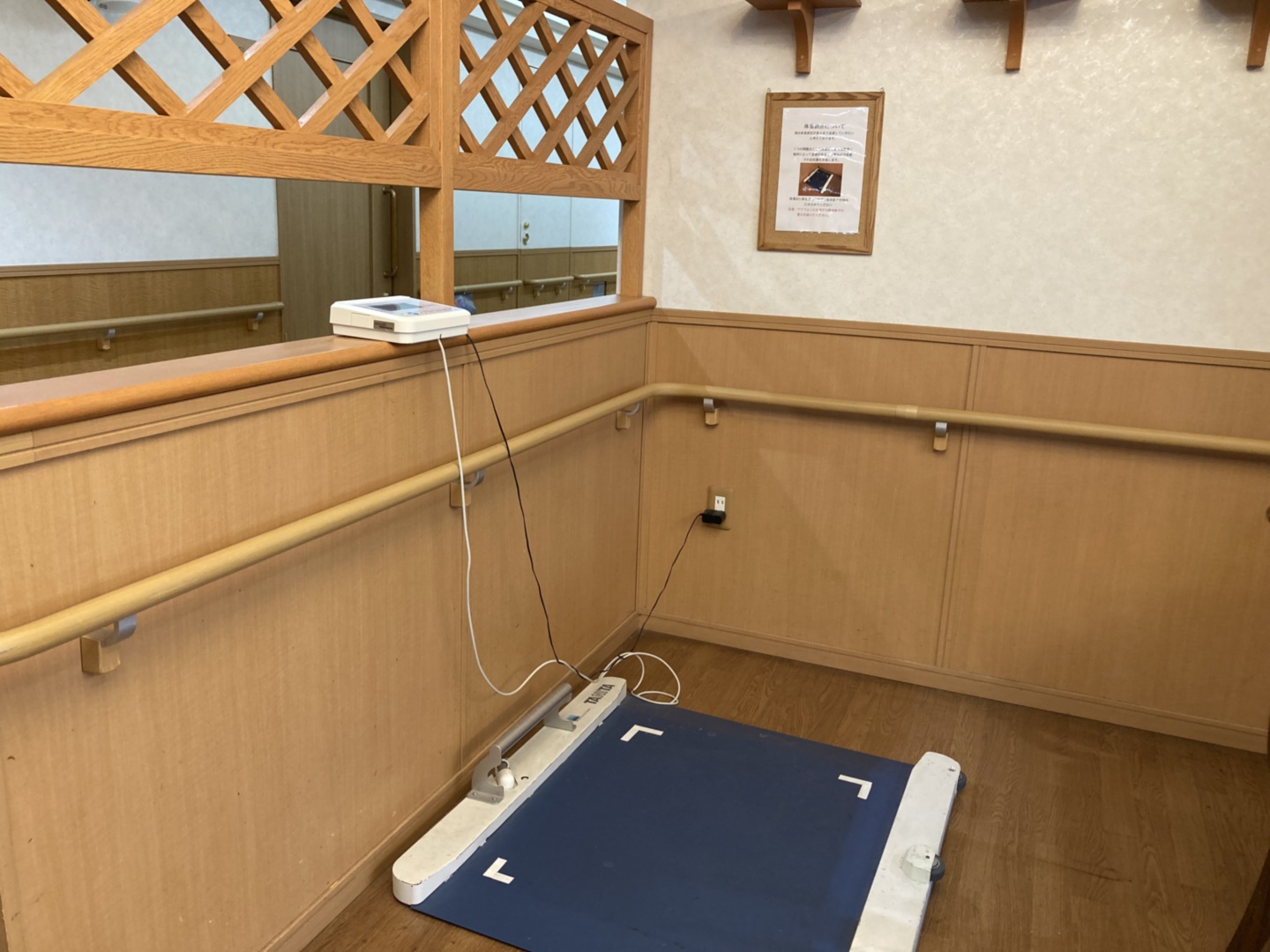 食堂の一角に車いすのまま測定できる体重計を設置しております。