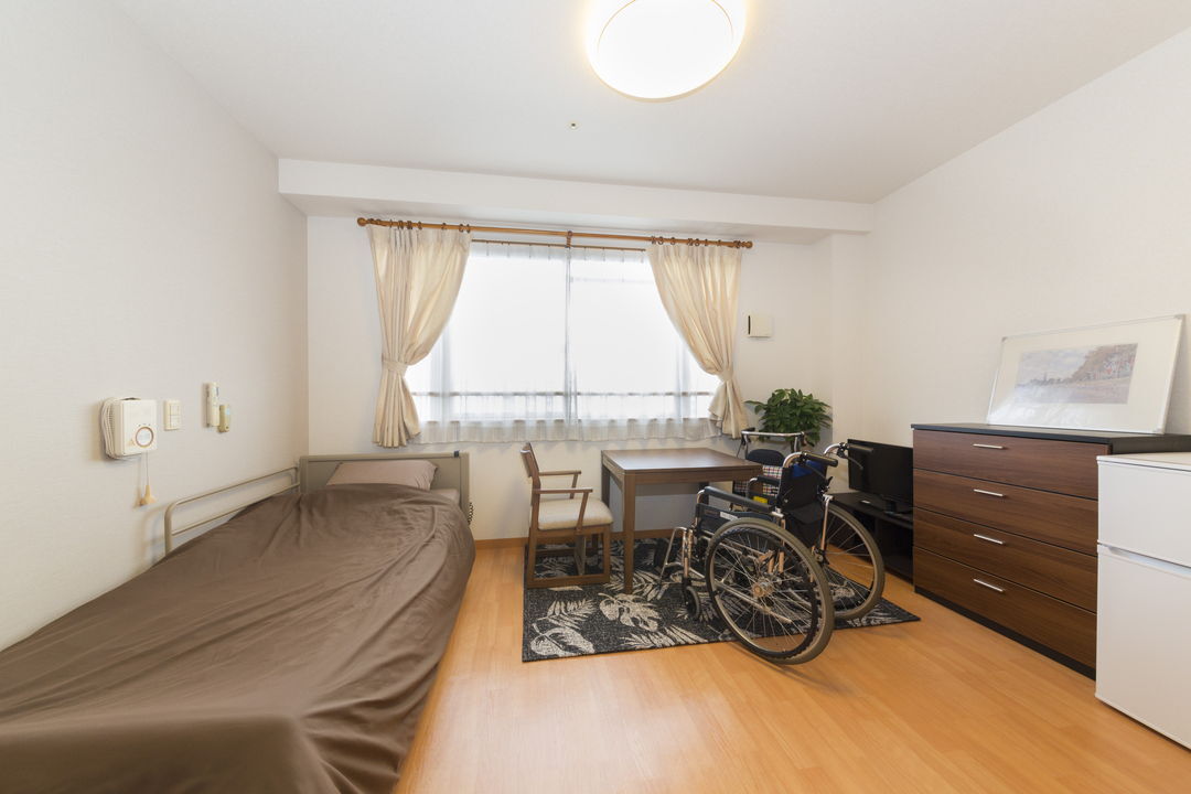 全室個室なのでご面会は24時間いつでもお気軽にお越しいただけます。居室にトイレや洗面台もあり、ご自宅と同様のプライベート空間を確保。また、緊急通報装置が各所に設置されており安心です。