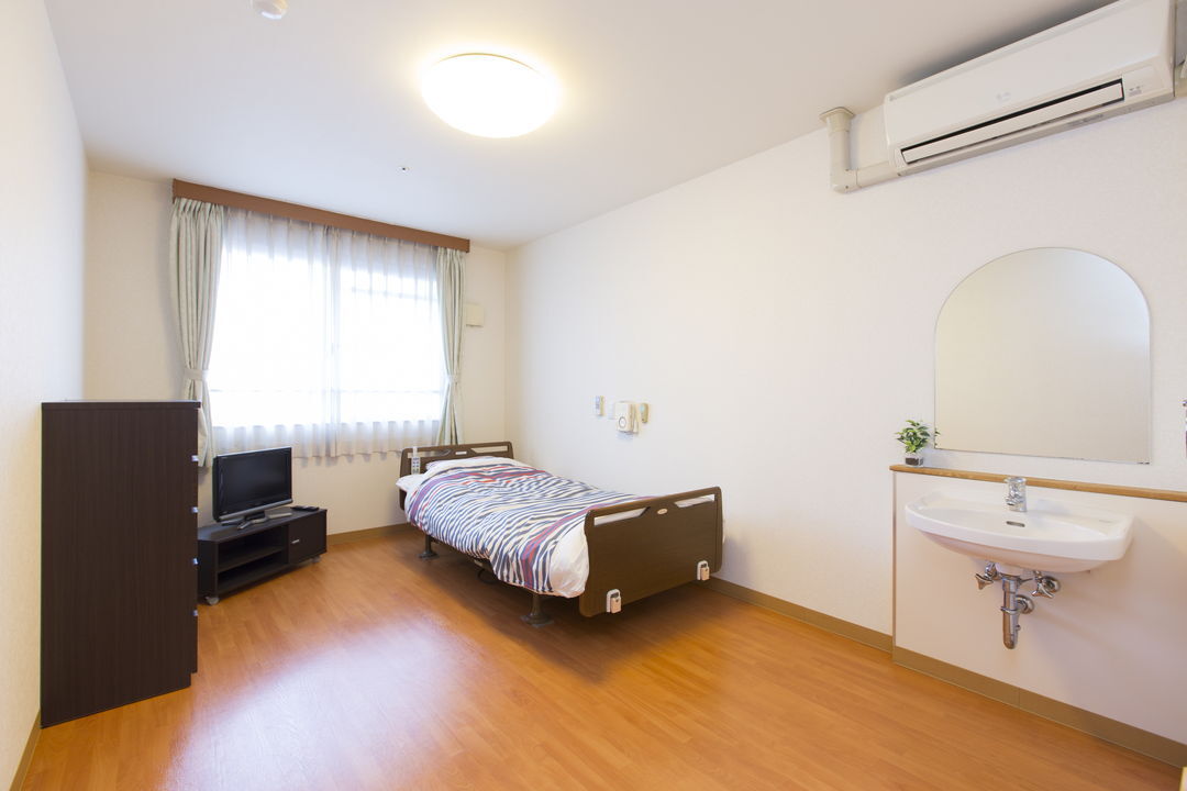全室個室なのでご面会は24時間いつでもお気軽にお越しいただけます。居室にトイレや洗面台もあり、ご自宅と同様のプライベート空間を確保。また、緊急通報装置が各所に設置されており安心です。