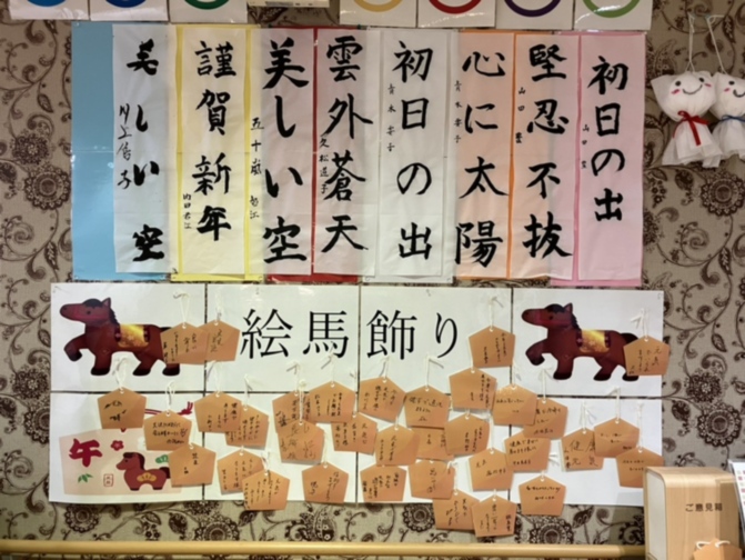 皆様の願い事を書いた絵馬をホールに飾らせて頂いています。