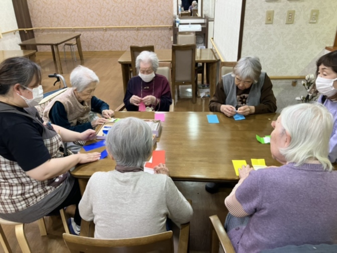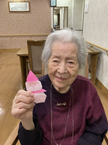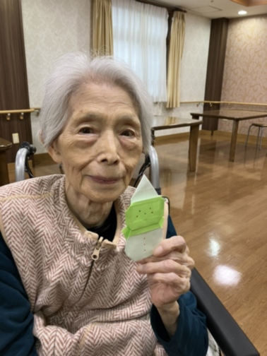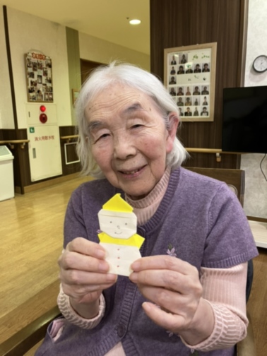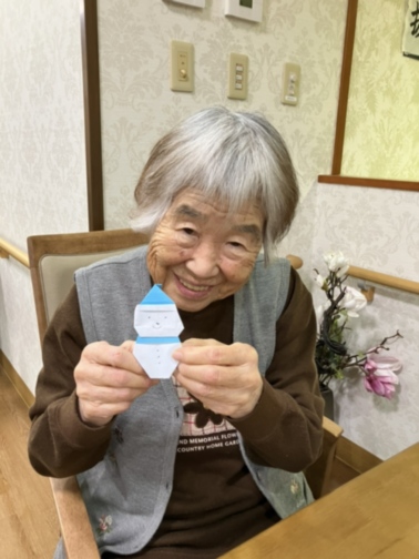 本日のおりがみ教室では「雪ダルマ」を作りました。