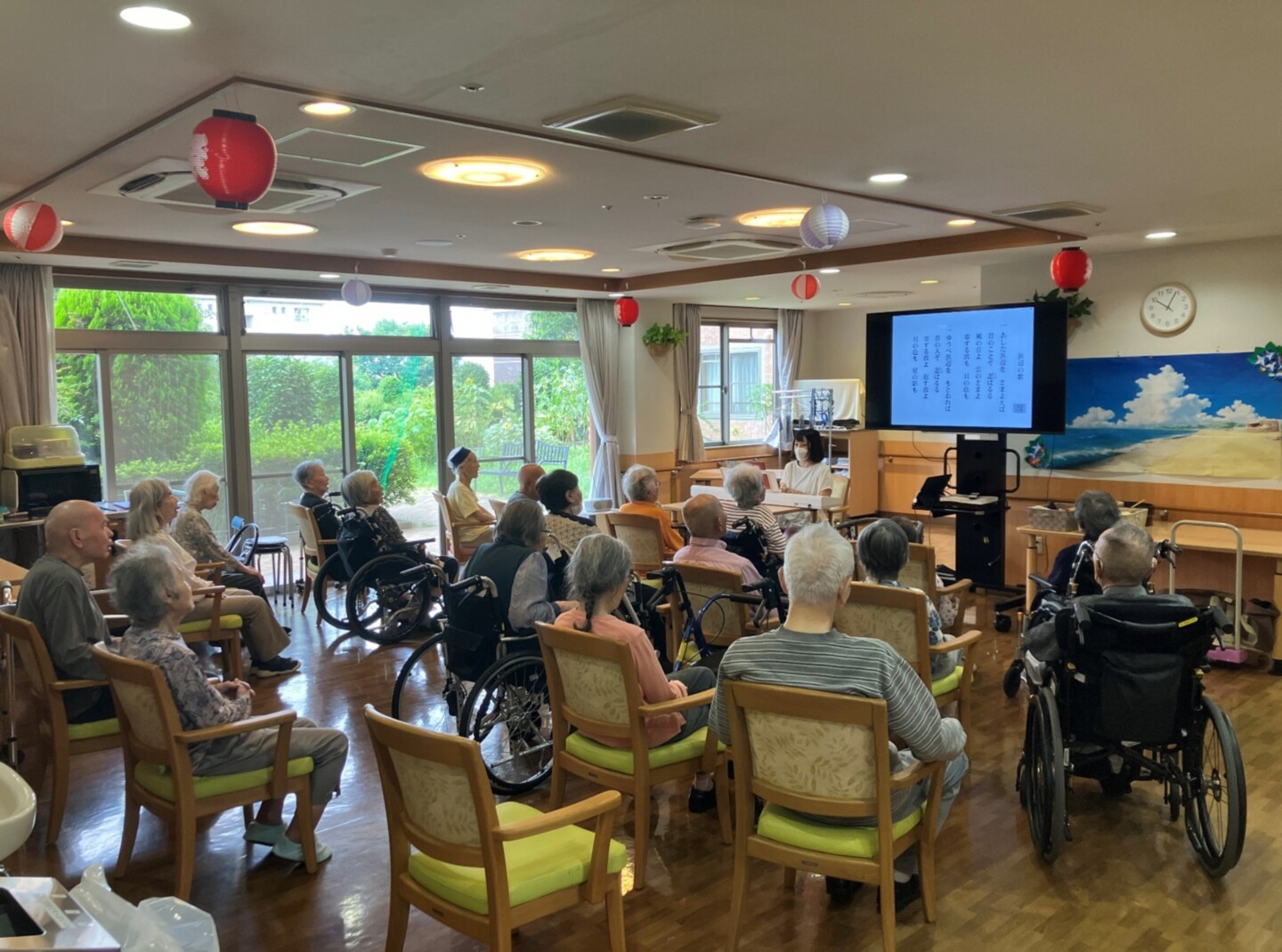 時には職員も混ざって、一緒に懐かしの名曲を一緒に歌っています。