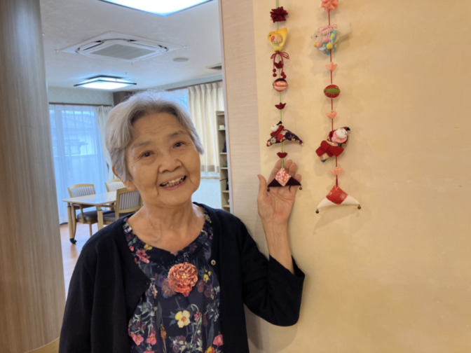 ご来訪いただきますと、懐かしい赤電話や名古屋を象徴する金シャチがお出迎えします。いずれもご入居者さまとスタッフの力作です!!