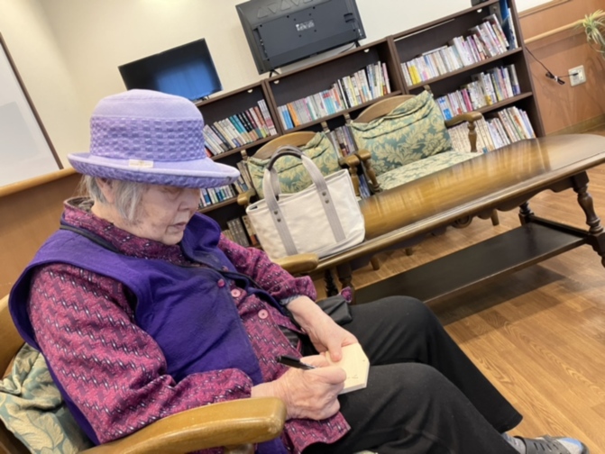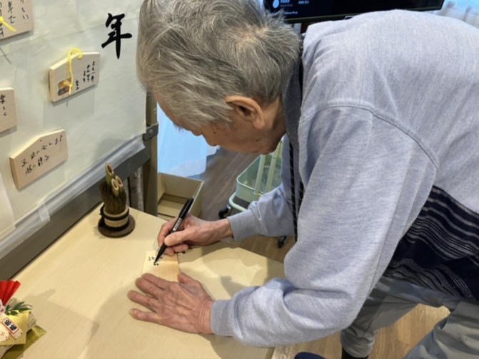 ご入居者の皆さま、真剣に絵馬に願い事をかいております。