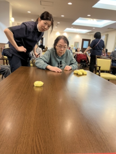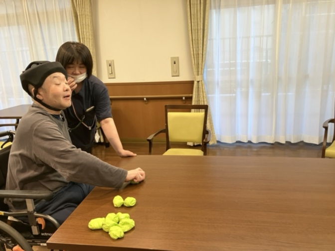 職員に支えてもらいながら、