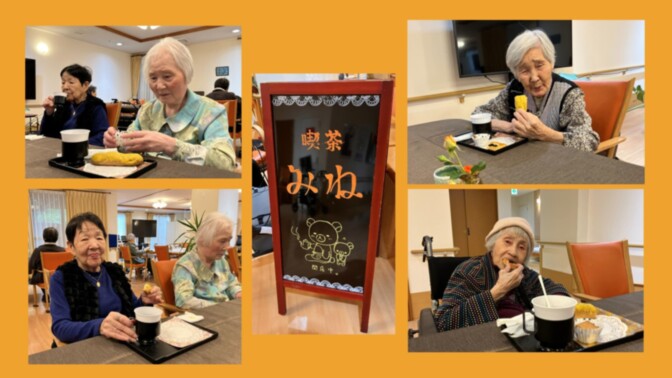 また、ご入居者さまの普段されていた生活に近づくように、訪問販売を月に2回実施しております。その他、図書館の設置、お散歩やお食事レクなど、様々な楽しみを皆さまのご希望を実現しております。