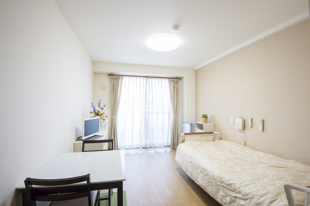 全室個室なのでご面会は24時間いつでもお気軽にお越しいただけます。居室にトイレや洗面台もあり、ご自宅と同様のプライベート空間を確保。また、緊急通報装置が各所に設置されており安心です。