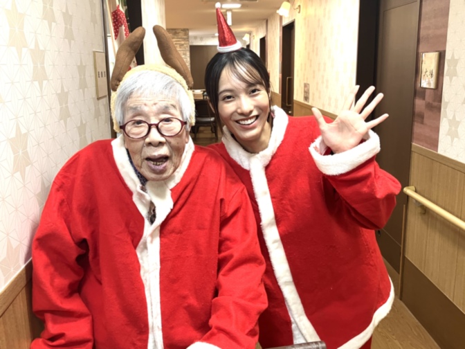 こちらはサンタの衣装を着た職員と入居者さまの