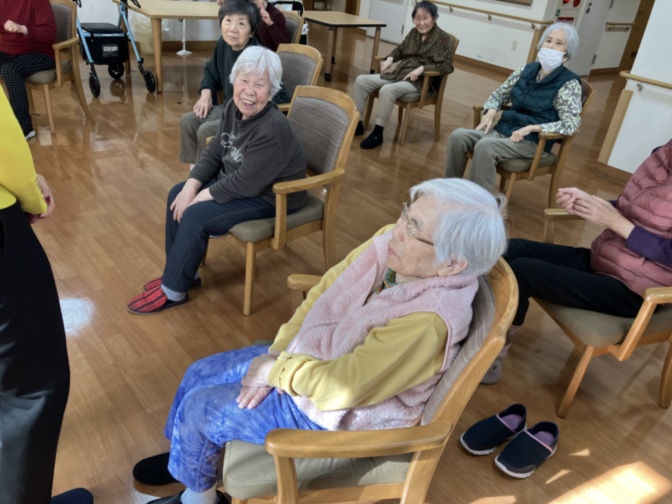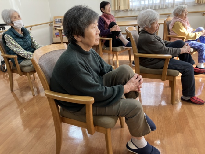 無理なく楽しく参加でき、ADL保持を目指した動きに皆さま熱心に取り組まれていました。