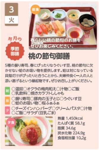 咀嚼力、嚥下力に合わせたやわらか食など、お身体の状態に合わせた形態食をご用意。高血圧や心臓病などの病態別食や、減塩食などにも対応いたします。食べる楽しみを感じ続けていただけるよう、日々メニューの開発に努めています。