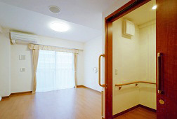 全室個室なのでご面会は24時間いつでもお気軽にお越しいただけます。居室にトイレや洗面台もあり、ご自宅と同様のプライベート空間を確保。また、緊急通報装置が各所に設置されており安心です。
