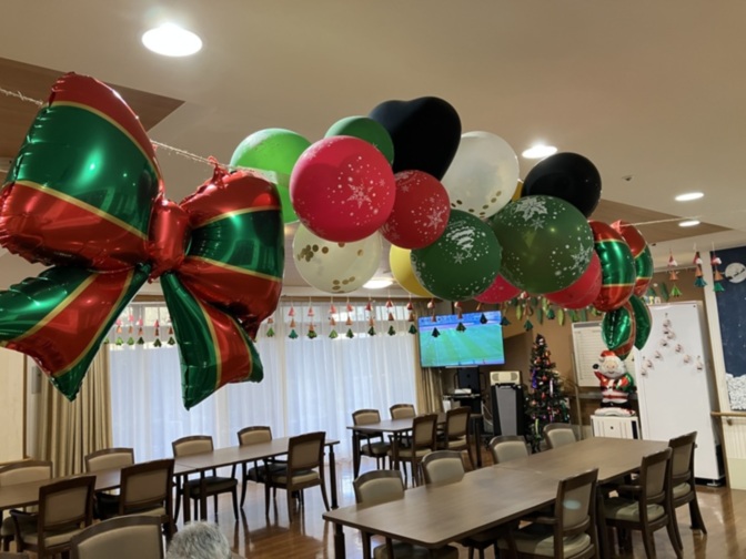 まずはこちらの風船装飾。小柄な職員さんが椅子に上りながら一生懸命飾ってくれていました。
