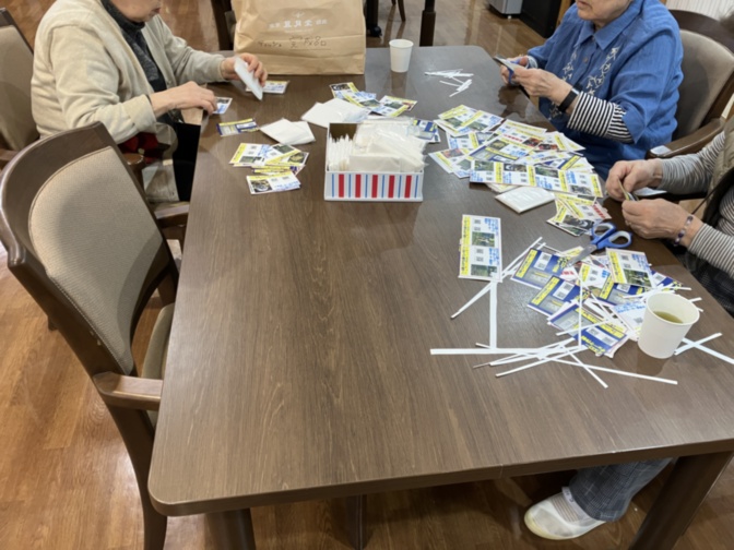 少し認知症状がある方にとっては単純作業を通じて脳の刺激になれば…という目的もあったのですが、今日お手伝い頂いたのは、混乱しながらも作業ができる方、作業中でも記憶が抜けてしまう方、本当に内職ばりのスピードで行える方、という3名でした。