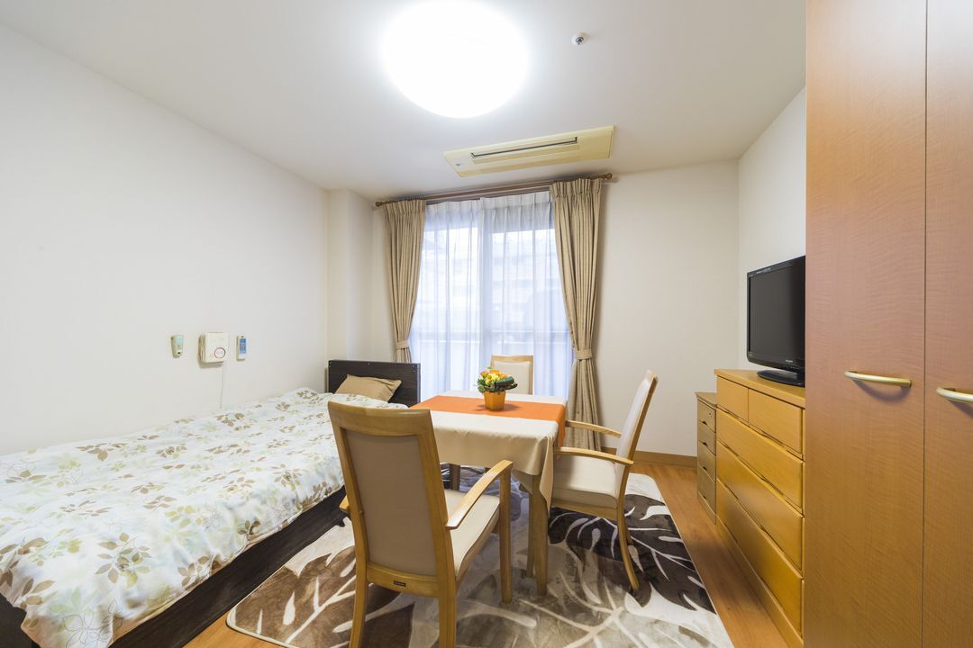 全室個室なのでご面会は24時間いつでもお気軽にお越しいただけます。居室にトイレや洗面台もあり、ご自宅と同様のプライベート空間を確保。また、緊急通報装置が各所に設置されており安心です。