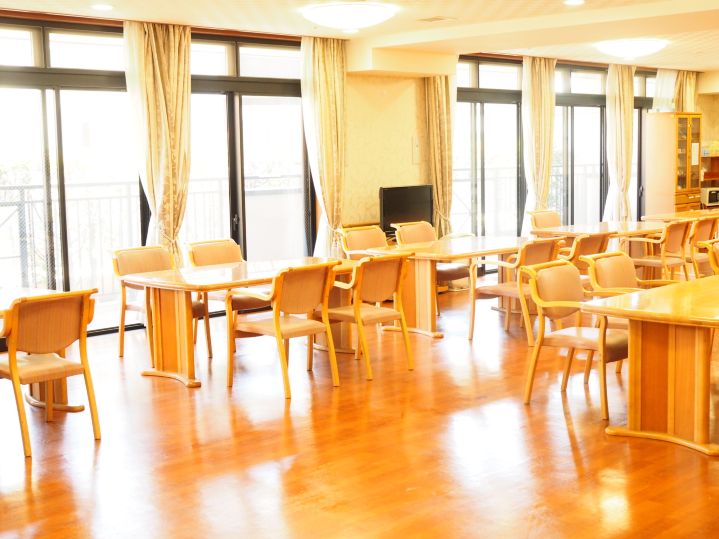 全室個室なのでご面会は24時間いつでもお気軽にお越しいただけます。居室にトイレや洗面台もあり、ご自宅と同様のプライベート空間を確保。また、緊急通報装置が各所に設置されており安心です。