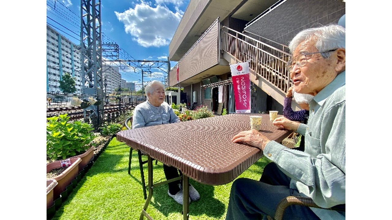 小さいながらも裏庭に季節に合わせてお花たちを植え、お茶の飲めるスペースを作りました。あまり外出が出来ない方でもお花や電車を眺めながら気分転換が出来るスペースです。