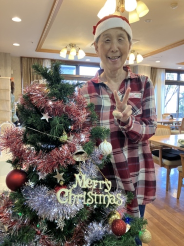 ホームでも、ツリーの前で記念撮影を行い、皆さまの素敵な笑顔がたくさん咲きました。