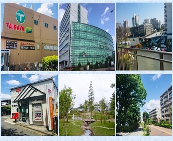 徒歩圏内にはスーパーやコンビニ、郵便局があり生活に便利。スーパーまでの道は歩道が広く、歩きやすい為、お散歩にもぴったり。