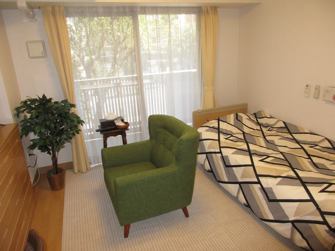 全室個室なのでご面会は24時間いつでもお気軽にお越しいただけます。居室にトイレや洗面台もあり、ご自宅と同様のプライベート空間を確保。また、緊急通報装置が各所に設置されており安心です。