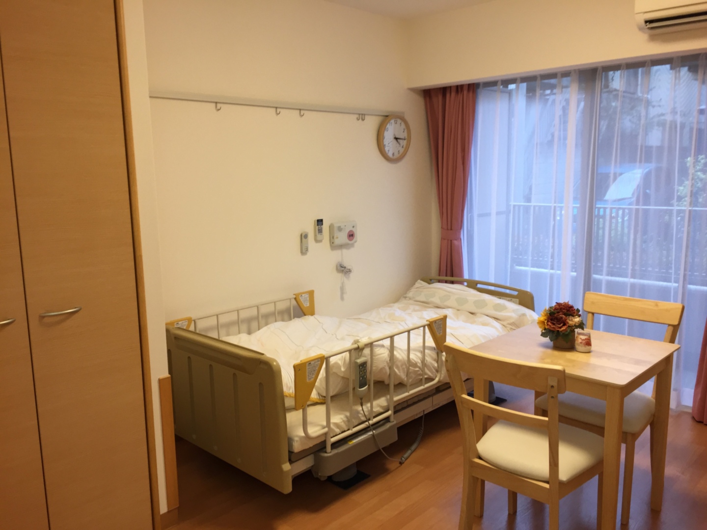 全室個室なのでご面会は24時間いつでもお気軽にお越しいただけます。居室にトイレや洗面台もあり、ご自宅と同様のプライベート空間を確保。また、緊急通報装置が各所に設置されており安心です。