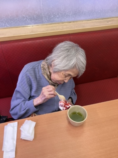 買い物の後は アイスを食べて