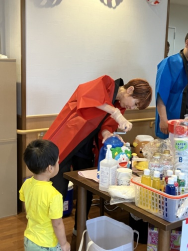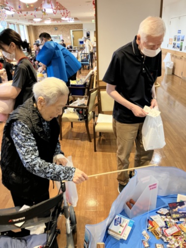 8月の子ども食堂で作った装飾品を飾って縁日を行いました。