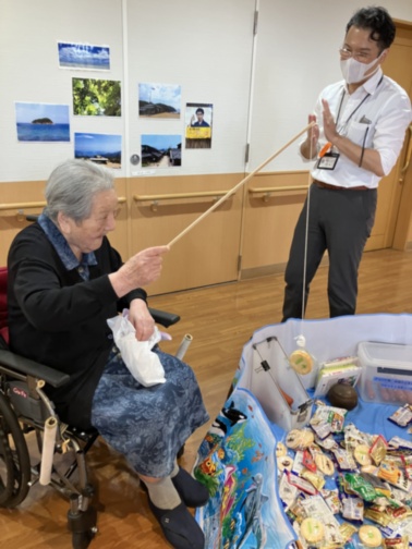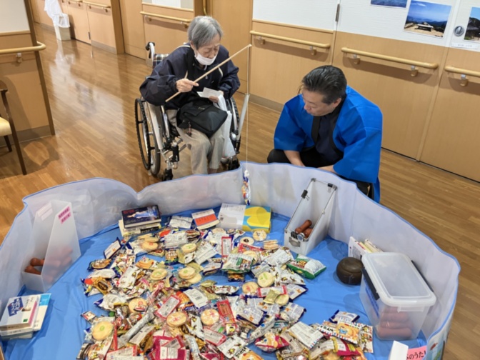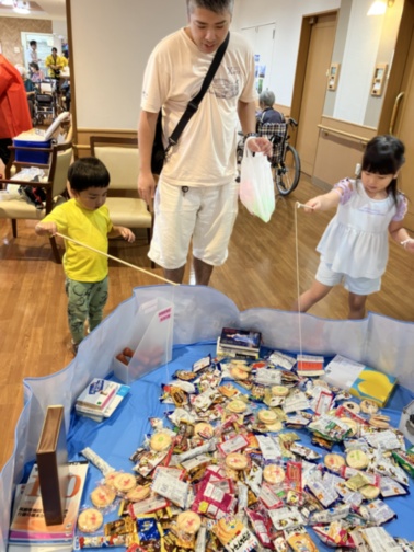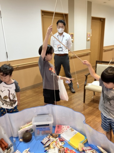 お目当てのお菓子目掛けて釣りを楽しんでいました。