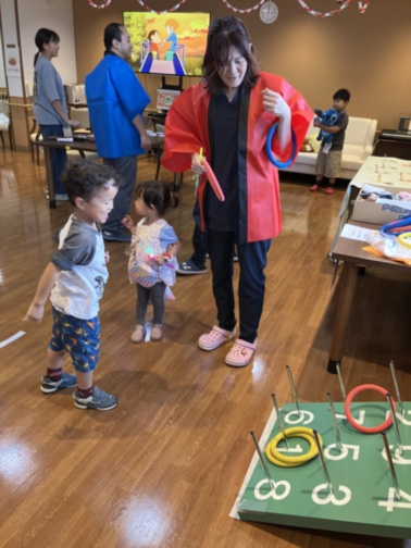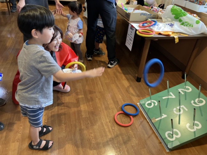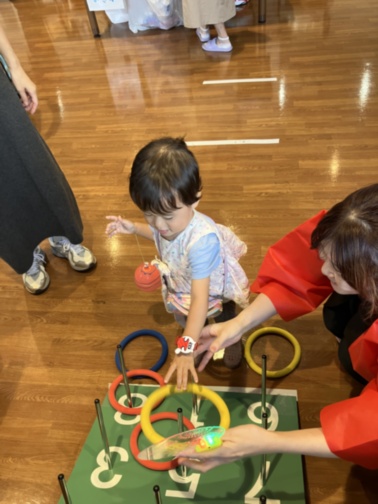 輪投げも入った得点で景品があり欲しい景品めがけて投げておりました。