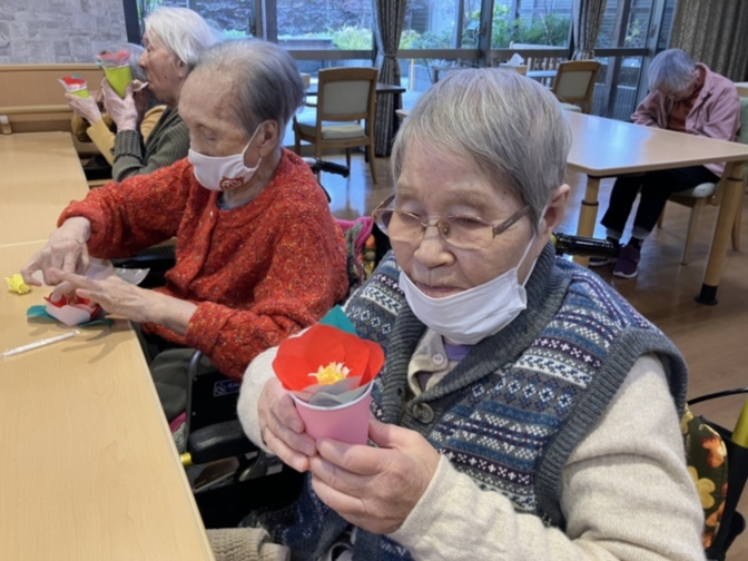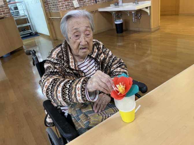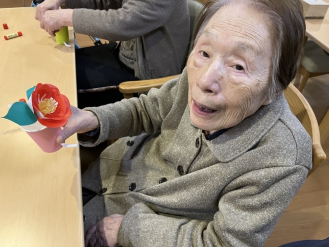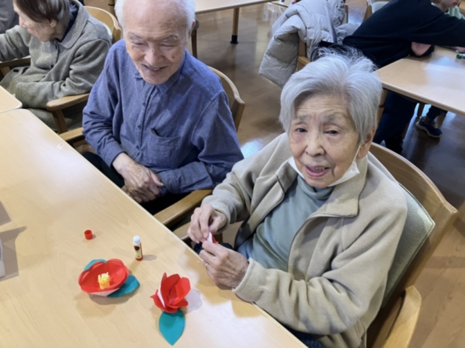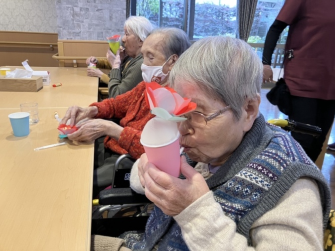 今年初のこども食堂では、吹いて咲く椿を作りました!
