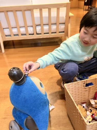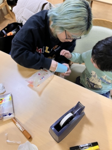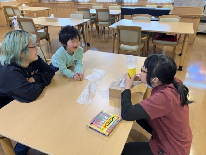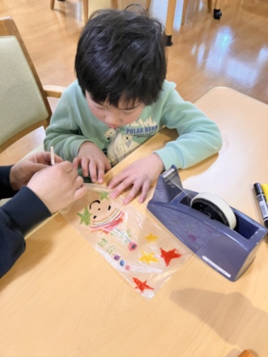 遊びにきてくれたお子さんには、ビニールに自由に絵をかいてもらい、膨らませて遊びみました!