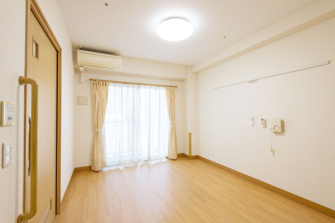 全室個室なのでご面会は24時間いつでもお気軽にお越しいただけます。居室にトイレや洗面台もあり、ご自宅と同様のプライベート空間を確保。また、緊急通報装置が各所に設置されており安心です。