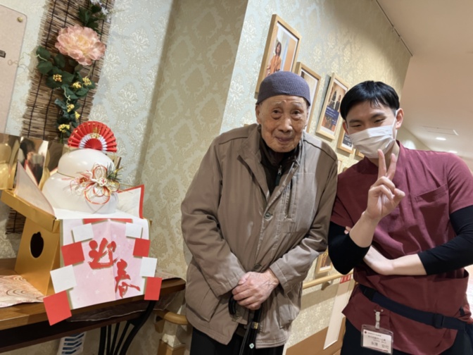 食事で下りて来られた入居者様が鏡餅を発見されました。