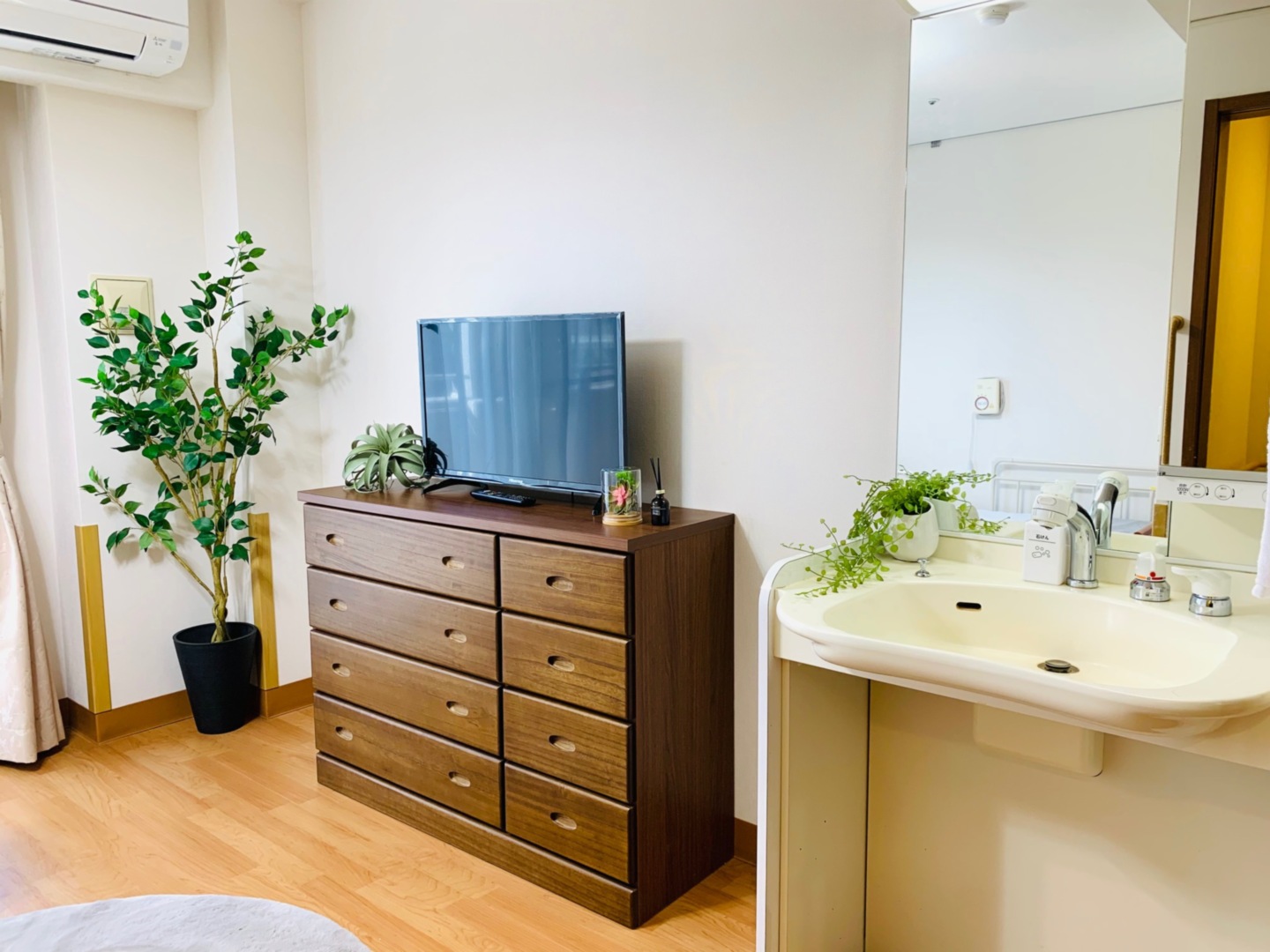 全室個室なのでご面会は24時間いつでもお気軽にお越しいただけます。居室にトイレや洗面台もあり、ご自宅と同様のプライベート空間を確保。また、緊急通報装置が各所に設置されており安心です。
