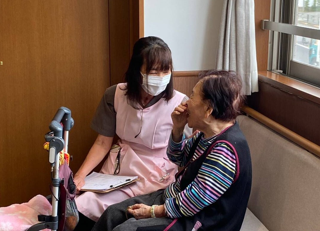 思いやりを持ったやさしいスタッフが働いています。ケアスタッフの80%が本社実施のユマニチュード(やさしさを伝えるケア)研修に参加しています。