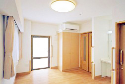 全室個室なのでご面会は24時間いつでもお気軽にお越しいただけます。居室にトイレや洗面台もあり、ご自宅と同様のプライベート空間を確保。また、緊急通報装置が各所に設置されており安心です。
