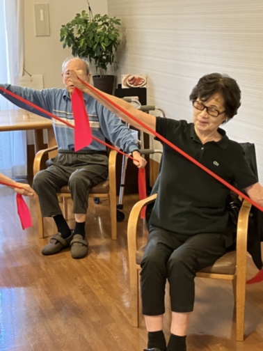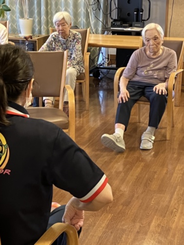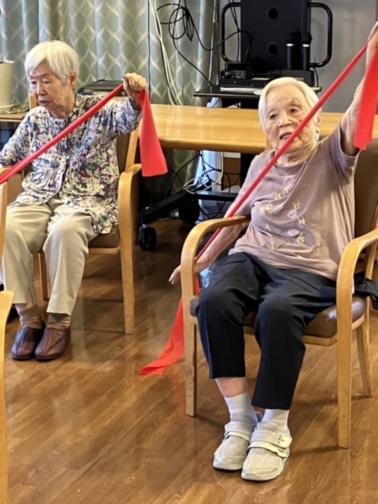 伸び伸びと体操をされている、ご入居者様の様子をご覧下さい。