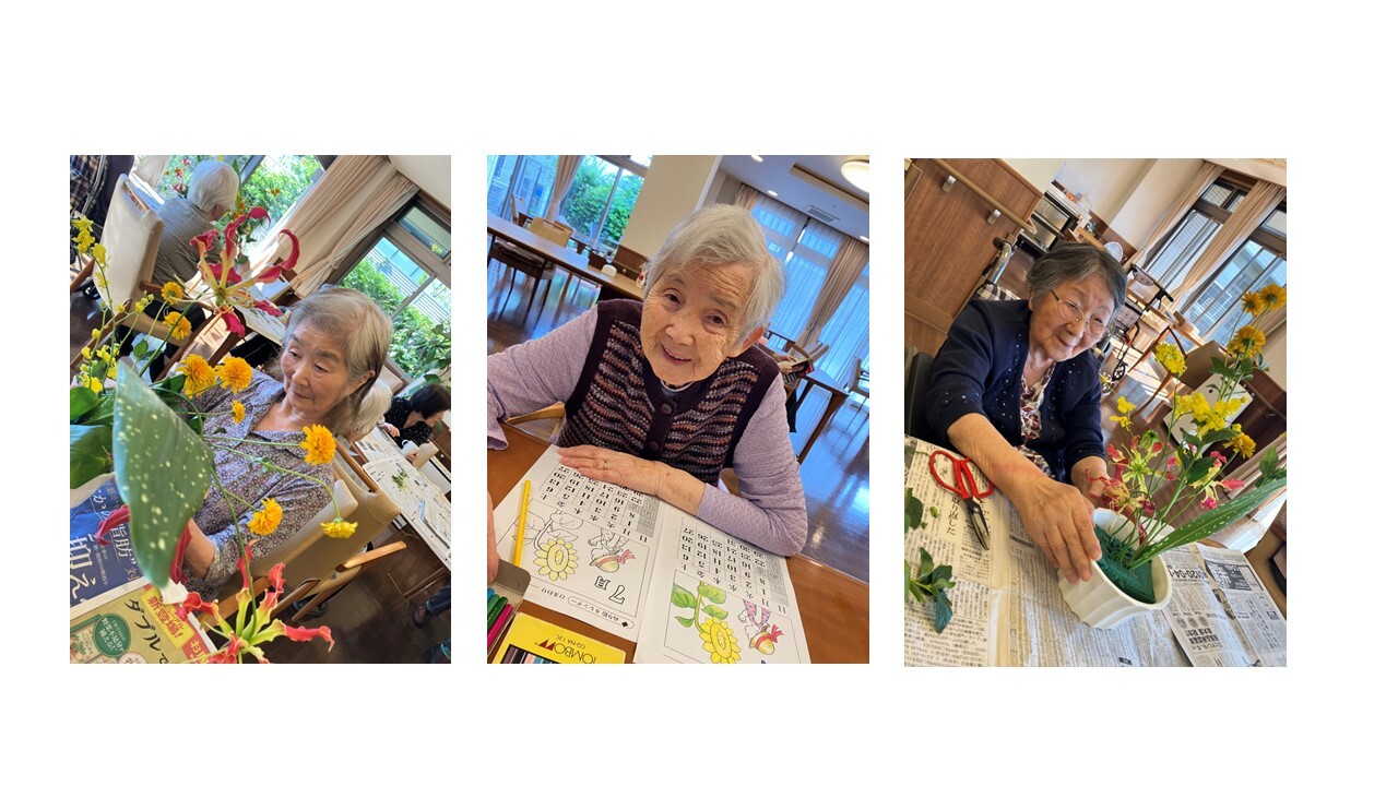 フラワーアレンジメント・書道・折り紙・カラオケ等を行っています。
