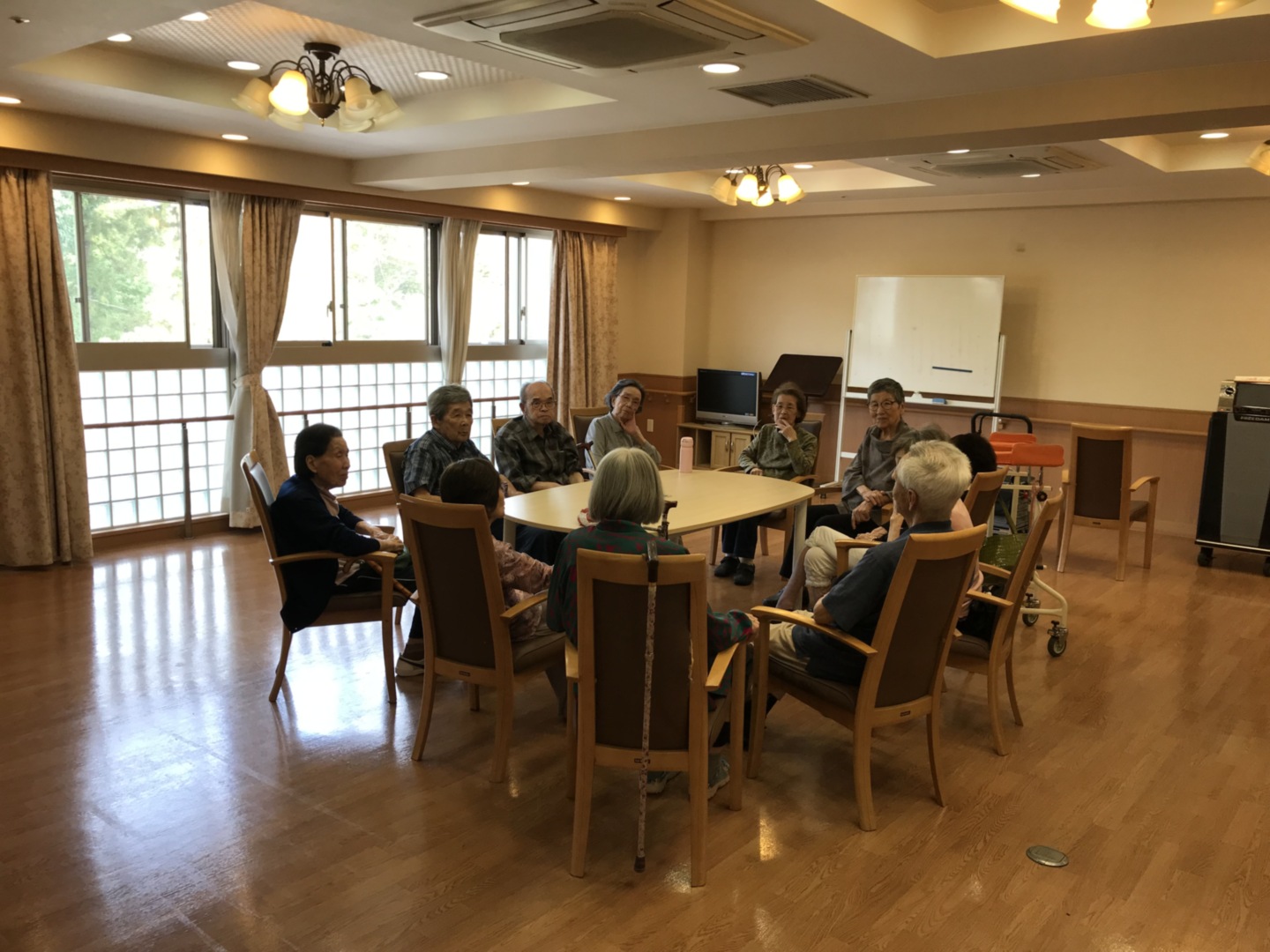 ご入居者さまたちで体操教室や俳句の会などを開催され、とても活気のある空間になっています。