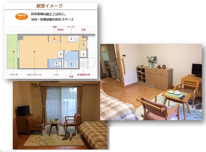 | 居室設備 | 洗面、暖房便座、緊急呼出装置、収納、下駄箱、浴室、ミニキッチン、洗濯機スペース、固定電話設置可能、玄関収納椅子 |